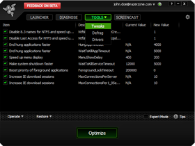 Menyederhanakan proses pengaturan kinerja PC Anda dengan mudah menyediakan Anda dengan pilihan untuk Tweak, Defrag, atau memperbarui driver usang.Tidak tahu di mana untuk memulai untuk mengoptimalkan komputer Anda dan pengaturan game? Hapus semua kebingungan dengan "Tweak" tool, yang secara otomatis akan menganalisis PC Anda dan meningkatkan semua konfigurasi untuk Anda.